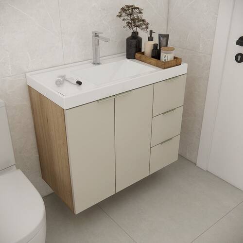 Gabinete de Banheiro com Cuba Vittare 79,6Cm Estilare Gab5003 Carvalho/Nude Gaveta Direita