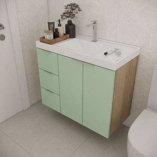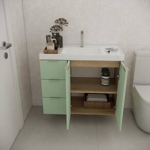 Gabinete de Banheiro com Cuba Vittare 79,6Cm Estilare Gab5004 Carvalho/Verde Gaveta Esquerda