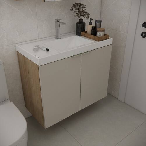 Gabinete de Banheiro com Cuba Vittare 79,6Cm Estilare Gab5002 Carvalho/Nude