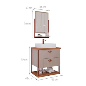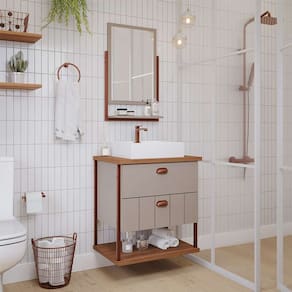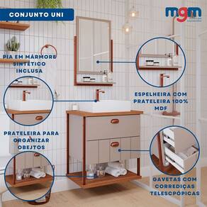 que tal o conjunto de banheiro uni? transforme seu banheiro com o conjunto uni, que inclui gabinete e espelheira, peças perfeitas para otimizar e embelezar o ambiente. com estrutura em mdf e metalon, elas têm ótima resistência para o uso diário, enquanto também oferecem bom espaço de armazenamento, graças às 2 gavetas presentes no gabinete. completo para o dia a dia, o kit acompanha cuba de mármore sintético, que traz um toque de sofisticação ao ambiente e ainda facilita o processo de limpeza no dia a dia. destacando as cores atemporais e os puxadores concha, as peças deixarão seu banheiro mais bonito e elegante, como você sempre sonhou. Marca: Modern