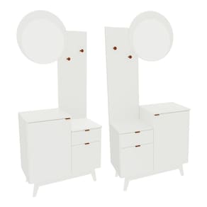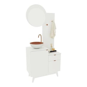 Características: - Produzido em MDP de 15/25mm, unindo leveza e robustez na medida certa. - Acabamento em pintura UV: mais resistência e beleza por muito mais tempo. - Espelho em vidro 3mm que amplia o espaço e valoriza a iluminação do ambiente. - 2 portas e 1 gaveta para manter tudo organizado e sempre à mão. - Gaveta com corrediças metálicas, garantindo abertura suave. - 2 ganchos para toalhas em aço cromado: mais praticidade na rotina. - Pés no estilo retrô em PVC, que elevam o visual e facilitam a limpeza. - Puxadores metálicos práticos e minimalistas. - Montagem reversível: a espelheira e a porta podem ser montadas no lado esquerdo ou direito do móvel.