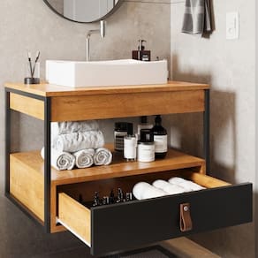 Apresentamos o Gabinete Harley com Cuba Dalla e Espelho Castanheira, perfeita para adicionar um toque de elegância e funcionalidade ao seu banheiro. O gabinete com seu acabamento traz um toque de sofisticação ao seu ambiente, por outro lado a cuba e o espelho traz um design moderno e funcional. Esse conjunto é a escolha ideal para adicional um toque de estilo e funcionalidade.