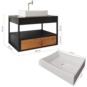 Marca: Loja DoceLar | Altura: 47 cm | Largura: 68 cm | Comprimento: 45 cm | Altura Embalado: 41,5 | Largura Embalado: 53 | Comprimento Embalado: 72 | Peso: 27,03 kg | Peso Embalado: 27,03 | Estado de Origem: SP | Modelo: Gabinete Harley Esp. Cuba Dalla Branca | Material: MDP de 15 mm, aço, material sintético | Tonalidade: Multicolorido | Garantia em meses: 3 meses de garantia para defeitos de fabricação | Descrição do Tamanho: 47 x 68 x 45 cm | Com portas: Não | Fonte do produto: Loja DoceLar | Linha: Banheiro | Cor da pia: Branca | Quantidade de furos para torneira: Um furo | Profundidade: 45 cm | É kit: Sim | Condição do item: Novo | Tipo de armário para banheiro: Para pendurar | Quantidade de portas: 0 | Com rodas: Não | Materiais do móvel: MDP de 15 mm, aço, material sintético | Com gavetas: Sim | Material da pia: Mármore sintético | Quantidade de gavetas: 1 | Inclui espelho: Sim | Inclui pia: Sim | Inclui torneira: Não Cor: Preto/Preto/Canela/Preto