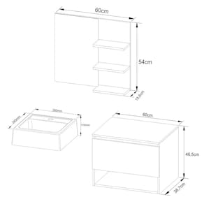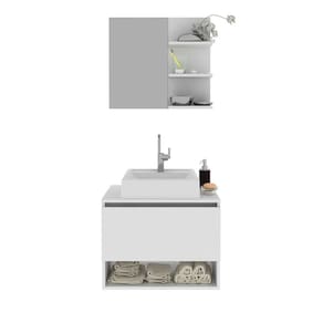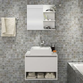 O Kit para Banheiro é a escolha ideal para transformar o seu espaço em um ambiente elegante e organizado. Com um design atual, ele oferece não apenas beleza, mas também funcionalidade, contribuindo para um banheiro agradável e útil. Produzido com materiais de alta qualidade, o kit garante durabilidade e resistência, criando um ambiente harmonioso e agradável para o seu dia a dia. CARACTERÍSTICAS TÉCNICAS: - Produzida em MDP de 15 mm - Acabamento UV na cor Branco - Cuba em Mármore Sintético - Acompanha Espelho - Porta Basculante com Articulador e Dobradiças Metálicas - Puxador tipo Cava - Balcão Suspenso *Kit Composto por Gabinete Suspenso (3606), Espelheira (3608) e Cuba (3630) INFORMAÇÕES TÉCNICAS: 3606: Alt. 46,5 cm x Larg. 60 cm x Prof. 38,7 cm x P. 12 kg 3608: Alt. 54 cm x Larg. 60 cm x Prof. 15,6 cm x P. 6,2 kg 3630: Alt. 11,5 x Larg. 35 x Prof. 334 cm P. 5,5 kg INFORMAÇÕES ADICIONAIS: - ATENÇÃO: Não trabalhamos e não nos responsabilizamos pela montagem do móvel. Antes da montagem conferir se o produto está de acordo com o que comprou, produto montado e danificado pela montagem não será aceito troca. Montagem e instalação por conta do comprador. - As imagens ambientadas são meramente ilustrativas e podem apresentar itens que não compõe o produto. As cores do produto podem variar de acordo com o monitor, a iluminação do ambiente ou sua percepção visual. - Limpeza: Deve ser feita com pano macio e seco ou levemente. Não devem ser utilizados abrasivos como palha de aço e objetos cortantes. Garantia para defeitos de fabricação conforme Código de Defesa do Consumidor.