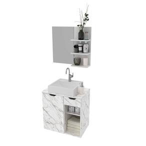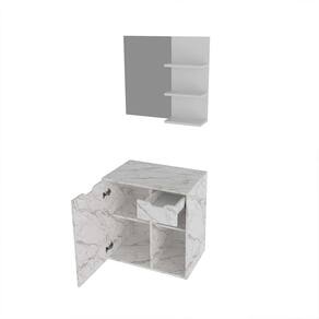 O Kit para Banheiro é a escolha ideal para transformar o seu espaço em um ambiente elegante e organizado. Com um design atual, ele oferece não apenas beleza, mas também funcionalidade, contribuindo para um banheiro agradável e útil. Produzido com materiais de alta qualidade, o kit garante durabilidade e resistência, criando um ambiente harmonioso e agradável para o seu dia a dia. CARACTERÍSTICAS TÉCNICAS: - Produzida em MDP de 15 mm - Acabamento UV na cor Mármore Branco e Branco - Cuba em Mármore Sintético - Acompanha Espelho - Gavetas com Corrediça Metálica - Puxador tipo Cava - Balcão Suspenso *Kit Composto por Gabinete Suspenso (3605), Espelheira (3608) e Cuba (3630) INFORMAÇÕES TÉCNICAS: 3605: Alt. 61,5 cm x Larg. 60 cm x Prof. 38,7 x P. 16,25 3608: Alt. 54 cm x Larg. 60 cm x Prof. 15,6 cm x P. 6,2 cm 3630: Alt. 11,5 x Larg. 35 x Prof. 334 cm P. 5,5 kg INFORMAÇÕES ADICIONAIS: - ATENÇÃO: Não trabalhamos e não nos responsabilizamos pela montagem do móvel. Antes da montagem conferir se o produto está de acordo com o que comprou, produto montado e danificado pela montagem não será aceito troca. Montagem e instalação por conta do comprador. - As imagens ambientadas são meramente ilustrativas e podem apresentar itens que não compõe o produto. As cores do produto podem variar de acordo com o monitor, a iluminação do ambiente ou sua percepção visual. - Limpeza: Deve ser feita com pano macio e seco ou levemente. Não devem ser utilizados abrasivos como palha de aço e objetos cortantes. Garantia para defeitos de fabricação conforme Código de Defesa do Consumidor.