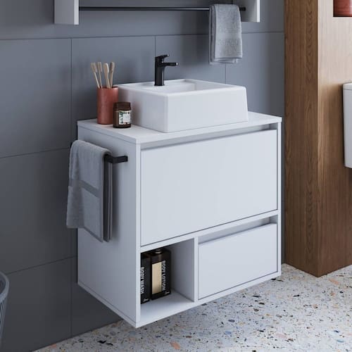 A renovação do seu banheiro a seu alcance, ou melhor seu banheiro mais elegante e charmoso com a nova coleção da Prodecor! Esse lindo gabinete com toalheiro em aço com pintura epóxi , 1 porta basculante, 1 gaveta e nicho para acomodar todos os seus pertences e com cores modernas traz todo o requinte que o seu banheiro precisa. Um grande diferencial é que você pode escolher o lado direito ou esquerdo do móvel para colocar o porta toalhas, sem precisar furar paredes. Componha agora mesmo o seu banheiro com a coleção da Prodecor! Produto acompanha cuba. Acabamento da Cuba: Liso Acabamento da Gaveta: Finish Foil Acabamento da Porta: Finish Foil Acabamento da Prateleira: Finish Foil Acompanha Cuba: Sim Acompanha Manual de Instalação: Sim Acompanha Parafusos Para Fixação Na Parede: Sim Acompanha Válvula: Não Ambiente Principal: Banheiro codigo_ean: 7900288114693 Complexidade da Montagem: Média: pode ser montado por mais de uma pessoa e/ou necessite de maior conhecimento para montagem Comprimento da Prateleira: 57 cm Cor: Branco Cor da Cuba: Branco Cor do Produto: Branco Cor Flex: Não Cor Interna: Branco Escala de Brilho: Fosco Escala de Brilho da Gaveta: Fosco Escala de Brilho da Porta: Fosco Escala de Brilho da Prateleira: Fosco Espessura da Prateleira: 1,5 cm Formato da Cuba: Retangular Furação para Cuba e Torneira: Não Gaveta com Chave: Não Itens Inclusos: 1 Gabinete, Manual de Montagem e Kit Ferragens Linha ou Coleção: Banheiro Manual de Montagem e Instalação: https://product-hub-prd.madeiramadeira.com.br/991817/documents/1b244c57-09ec-4384-a9c3-f257933080c112433644522517284098796904.pdf Marca: Prodecor Material da Cuba: Mármore Sintético Material da Gaveta: MDP Material da Porta: MDP Material da Prateleira: MDP Material do Tampo: MDP Material do Toalheiro: Aço Material Principal: MDP Medida da Cuba (C x L x P): 10x34x33,5 Montagem Flex: Puxador pode ser montado tanto do lado direito como no esquerdo Necessita Montagem: Sim Origem do Produto: Nacional Peso: 19,5 kg Peso Máximo por Gaveta: 5 kg Peso Máximo por Prateleira: 5 kg Possui Espelhos: Não Possui Nichos: 01 Possui Pés: Suspenso Possui Prateleiras: Sim Possui Recorte No Tampo Para Cuba: Não Possui Recorte No Tampo Para Misturador: Não Possui Sifão: Não Possui Tampo: Sim Possui Tampo de Vidro: Não Produto Montado: Sim Quantidade de Gavetas: 01 Recomendações de Uso, Manutenção e Limpeza: Para a limpeza do móvel utilizar pano levemente umedecido Resistente à Chuva: Não Sapatas Niveladoras: Não Sistema de Montagem: Parafusos, Cavilhas e Minifix Suporta Até (kg): 30 kg Tamanho do Gabinete: Médio: de 60cm a 80cm de largura Tipo de Corrediça da Gaveta: Metálica Telescópica Tipo de Cuba: Sobrepor Tipo de Dobradiça/Corrediça da Porta: Metálica Tipo de Gabinete: Gabinete Suspenso Tipo de Móvel para Banheiro: Gabinete com Cuba Tipo de Móvel para o Banheiro: Gabinete de Banheiro Tipo de Porta: Basculante Tipo de Puxador da Gaveta: Não Possui - Abertura por Fecho Toque Tipo de Puxador da Porta: Embutido Válvula indicada: Válvula padrão Marca: Prodecor