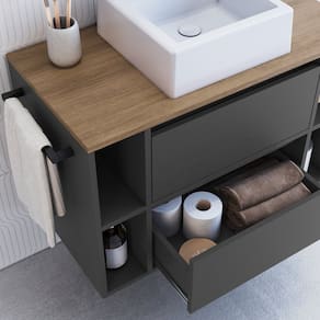 A renovação do seu banheiro a seu alcance, ou melhor seu banheiro mais elegante e charmoso com a nova coleção da Prodecor! Esse lindo gabinete com toalheiro em aço com pintura epóxi , uma porta basculante, uma gaveta e 4 nichos para acomodar todos os seus pertences e com cores modernas, traz todo o requinte que o seu banheiro precisa. Um grande diferencial é que você pode escolher o lado direito ou esquerdo do móvel para colocar o porta toalhas, sem precisar furar paredes. Componha agora mesmo o seu banheiro com a coleção da Prodecor! Produto acompanha cuba. Acabamento da Cuba: Liso Acabamento da Gaveta: Finish Foil Acabamento da Porta: Finish Foil Acabamento da Prateleira: Finish Foil Acompanha Cuba: Sim Acompanha Manual de Instalação: Sim Acompanha Parafusos Para Fixação Na Parede: Sim Ambiente Principal: Banheiro codigo_ean: 7909903963944 Complexidade da Montagem: Média: pode ser montado por mais de uma pessoa e/ou necessite de maior conhecimento para montagem Comprimento da Prateleira: 12 cm Cor: Mel/Grafite Cor da Cuba: Branco Cor do Produto: Mel/Grafite Cor Flex: Não Cor Interna: Grafite Escala de Brilho: Fosco Escala de Brilho da Gaveta: Fosco Escala de Brilho da Porta: Fosco Escala de Brilho da Prateleira: Fosco Espessura da Prateleira: 1,5 cm Furação para Cuba e Torneira: Não Gaveta com Chave: Não Itens Inclusos: 1 Gabinete e Manual de Montagem Linha ou Coleção: Banheiro Manual de Montagem e Instalação: https://product-hub-prd.madeiramadeira.com.br/957784/documents/2edf348e-6c94-4bf9-a8b5-f4425ae0f0842434325522517284179379513.pdf Material da Cuba: Mármore Sintético Material da Gaveta: MDP Material da Porta: MDP Material da Prateleira: MDP Material do Tampo: MDP Material do Toalheiro: Aço Material Principal: MDP Medida da Cuba (C x L x P): 10x34x33,5 Montagem Flex: puxador pode ser montado tanto do lado direito como no esquerdo Necessita Montagem: Sim Origem do Produto: Nacional Peso: 25,5 kg Peso Máximo por Gaveta: 5 kg Peso Máximo por Prateleira: 5 kg Possui Nichos: 04 Possui Pés: Suspenso Possui Prateleiras: Sim Possui Recorte No Tampo Para Cuba: Não Possui Recorte No Tampo Para Misturador: Não Possui Sifão: Não Possui Tampo: Sim Produto Montado: Não Quantidade de Gavetas: 01 Recomendações de Uso, Manutenção e Limpeza: Para a limpeza do móvel utilizar pano levemente umedecido Resistente à Chuva: Não Sapatas Niveladoras: Não Sistema de Montagem: Parafusos, cavilhas e minifix Suporta Até (kg): 35 kg Tipo de Corrediça da Gaveta: Metálica Telescópica Tipo de Dobradiça/Corrediça da Porta: Metálica Tipo de Móvel para o Banheiro: Gabinete de Banheiro Tipo de Porta: Basculante Tipo de Puxador da Gaveta: Não Possui - Abertura por Fecho Toque Tipo de Puxador da Porta: Não Possui Válvula indicada: Válvula padrão Marca: Prodecor