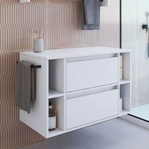 A renovação do seu banheiro a seu alcance, ou melhor seu banheiro mais elegante e charmoso com a nova coleção da Prodecor! Esse lindo gabinete com toalheiro em aço com pintura epóxi , uma porta basculante, uma gaveta e 4 nichos para acomodar todos os seus pertences e com cores modernas traz todo o requinte que o seu banheiro precisa. Um grande diferencial é que você pode escolher o lado direito ou esquerdo do móvel para colocar o porta toalhas, sem precisar furar paredes. Componha agora mesmo o seu banheiro com a coleção da Prodecor! Não acompanha cuba. Acabamento da Gaveta: Finish Foil Acabamento da Prateleira: Finish Foil Acompanha Cuba: Não Acompanha Manual de Instalação: Sim Acompanha Parafusos Para Fixação Na Parede: Sim Ambiente Principal: Banheiro codigo_ean: 7900288114570 Complexidade da Montagem: Média: pode ser montado por mais de uma pessoa e/ou necessite de maior conhecimento para montagem Comprimento da Prateleira: 12 cm Cor: Branco Cor do Produto: Branco Cor Flex: Não Cor Interna: Branco Escala de Brilho: Fosco Escala de Brilho da Gaveta: Fosco Escala de Brilho da Prateleira: Fosco Espessura da Prateleira: 1,5 cm Furação para Cuba e Torneira: Não Gaveta com Chave: Não Itens Inclusos: 1 Gabinete e Manual de Montagem Linha ou Coleção: Banheiro Manual de Montagem e Instalação: https://product-hub-prd.madeiramadeira.com.br/991772/documents/60f682c4-f8e2-448d-9f2c-37316d89cbf7e2434272522517284175005063.pdf Marca: Prodecor Material da Gaveta: MDP Material da Prateleira: MDP Material do Tampo: MDP Material do Toalheiro: Aço Material Principal: MDP Montagem Flex: Puxador pode ser montado tanto do lado direito como no esquerdo Necessita Montagem: Sim Origem do Produto: Nacional Peso: 21,7 kg Peso Máximo por Gaveta: 5 kg Peso Máximo por Prateleira: 5 kg Possui Espelhos: Não Possui Nichos: 04 Possui Pés: Suspenso Possui Portas: Não Possui Prateleiras: Sim Possui Recorte No Tampo Para Cuba: Não Possui Recorte No Tampo Para Misturador: Não Possui Sifão: Não Possui Tampo: Sim Possui Tampo de Vidro: Não Produto Montado: Não Quantidade de Gavetas: 02 Recomendações de Uso, Manutenção e Limpeza: Para a limpeza do móvel utilizar pano levemente umedecido Resistente à Chuva: Não Sapatas Niveladoras: Não Sistema de Montagem: Parafusos, Cavilhas e Minifix Suporta Até (kg): 35 kg Tamanho do Gabinete: Grande: Acima de 80cm de largura Tamanho Indicado Para Cuba: 34x32 Tipo de Corrediça da Gaveta: Metálica Telescópica Tipo de Gabinete: Gabinete Suspenso Tipo de Móvel para Banheiro: Gabinete Tipo de Móvel para o Banheiro: Gabinete de Banheiro Tipo de Puxador da Gaveta: Não Possui - Abertura por Fecho Toque Marca: Prodecor