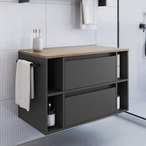 Tipo: Gabinete de banheiro suspenso com porta, gaveta, nichos e toalheiro