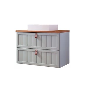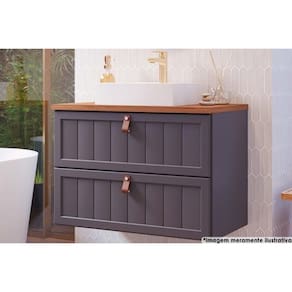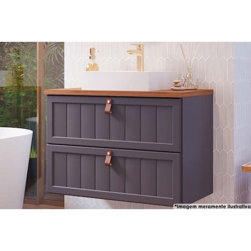 Gabinete de Banheiro Suspenso Sense c/ Cuba 1 Gaveta e 1 Porta Basculante 80cm Titanium/Freijo - MGM