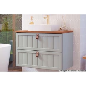 Gabinete de Banheiro Suspenso Sense c/ Cuba 1 Gaveta e 1 Porta Basculante 80cm Pistache/Freijo - MGM