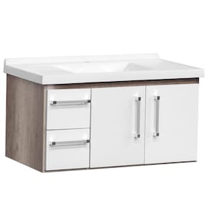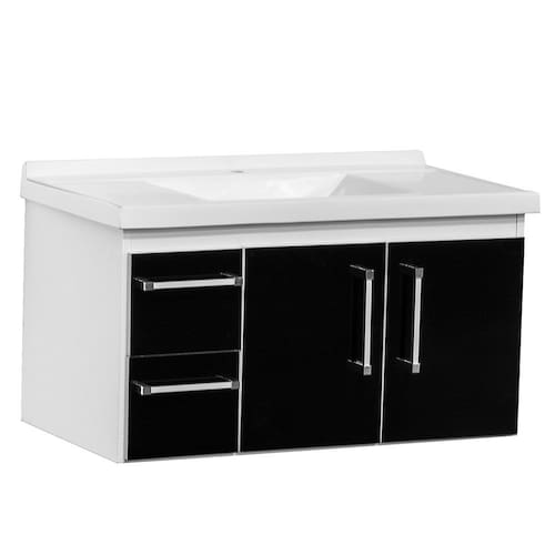 Gabinete - Medida: 750 x 405 x 400mm - Puxadores em aluminio com ponteiras em ABS - Pia em mármore sintético branco 800 x 440 mm - Corrediças telescópica (250mm) - MDF 15mm pintura UV - Bordas em PVC - Gavetas revestidas em PET, que garantem um perfeito acabamento - Dobradiça com pistão com ângulo de abertura de 110º