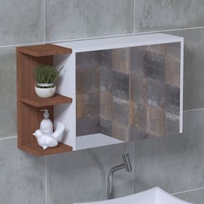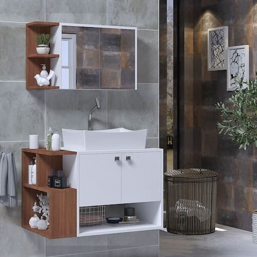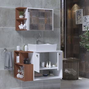 Gabinete para Banheiro suspenso , ele é composto pelo gabinete com tampo cuba suspensa e espelheira , o gabinete possui duas portas, abaixo da porta tem uma prateleira com um espaço, e na sua lateral esquerda possui um nicho com três repartições, a espelheira contém duas portas com os espelhos fixados nelas um bom espaço interno e também no gabinete, para guardar pequenos produtos do dia a dia . Acabamento da Cuba: Esmaltado Acabamento da Porta: MDF Acompanha Cuba: Sim Acompanha Gaveteiro: Não Acompanha Manual de Instalação: Sim Acompanha Parafusos Para Fixação Na Parede: Sim Acompanha Tampo: Sim Acompanha Válvula: Não Altura do Espelho: 37,9 cm Ambiente Principal: Banheiro codigo_ean: 7900288231048 Complexidade da Montagem: Média: pode ser montado por mais de uma pessoa e/ou necessite de maior conhecimento para montagem Cor: Branco/Freijo Cor da Cuba: Branco Cor da Porta: Branco Cor do Produto: Branco/Freijo Cor Interna: Branco Escala de Brilho: Brilhante Escala de Brilho da Porta: Brilhante Espessura do Espelho: 3 mm Formato da Cuba: Retangular Formato do Espelho: Retangular Formato Espelheira: Retangular Furação para Cuba e Torneira: Não Largura do Espelho: 25 cm Manual de Montagem e Instalação: https://product-hub-prd.madeiramadeira.com.br/360080844/documents/63244748-0760-4414-922a-f8cd84962e983210629664217581128623822.pdf Marca: Arte Gabinetes Material da Cuba: Resina Material da Porta: MDF/MDP Material do Puxador da Porta: Plástico Material do Tampo: MDF/MDP Material Principal: MDF/MDP Medida da Cuba (C x L x P): 42x32,5x11 Medida da Espelheira (A x L x P): 54x16x70 Medida do Gabinete (A x L x P): 46,5x70x45 Necessita Montagem: Sim Origem do Produto: Nacional Peso: 21 kg Possui Espelheira: Sim Possui Gabinete: Sim Possui Gavetas: Não Possui iluminação: Não Possui Nichos: Sim Possui Pés: Não Possui Porta de Vidro: Não Possui Recorte No Tampo Para Cuba: Não Possui Recorte No Tampo Para Misturador: Sim Possui Rodízio: Não Possui Sifão: Não Possui Tampo: Sim Possui Tampo de Vidro: Não Produto Montado: Não Quantidade de Espelhos: 02 Espelhos com Tamanhos Iguais Recomendações de Uso, Manutenção e Limpeza: Limpador Multiuso, Lustra móveis Sistema de Montagem: Parafusos,cavilhas,girofix Suporta Até (kg): 2,5 kg Suporte para Toalheiro: Não Tamanho do Espelho (A x L): 37,9x25 Tamanho do Gabinete: Médio: de 60cm a 80cm de largura Tamanho do Produto: 46,5x70x45 Tipo de Cuba: Sobrepor Tipo de Dobradiça/Corrediça da Porta: Com Amortecedor Tipo de Fixação do Espelho: Silicone Tipo de Gabinete: Gabinete Suspenso Tipo de Porta: Abrir Tipo de Puxador da Porta: Externo Marca: Não Informado
