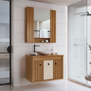 Fabricado em MDF, esse conjunto de 80cm de largura é ideal para quem busca beleza e funcionalidade no móvel do banheiro. Possui amplo espaço interno para armazenamento de itens pessoas e decorativos. As portas possuem acabamento ripado e puxadores em couro sintético. As dobradiças possuem amortecimento o que facilita o manuseio no dia a dia. Acabamento da Gaveta: PU Acabamento da Porta: PU Acabamento da Prateleira: Pintura UV Acompanha Cuba: Não Acompanha Manual de Instalação: Sim Acompanha Parafusos Para Fixação Na Parede: Não Ambiente Principal: Banheiro codigo_ean: 7909903812310 Comprimento da Prateleira: 25 cm Cor: Freijó Cor do Produto: Freijó Cor Interna: Freijó Escala de Brilho: Fosco Escala de Brilho da Gaveta: Fosco Escala de Brilho da Porta: Fosco Escala de Brilho da Prateleira: Fosco Espessura da Prateleira: 15 cm Furação para Cuba e Torneira: Não Gaveta com Chave: Não Itens Inclusos: 1 Gabinete e manual de montagem, kit ferragens Linha ou Coleção: Laura Manual de Montagem e Instalação: https://product-hub-prd.madeiramadeira.com.br/920766/documents/dbfd4bba-7ffc-4ef0-b1cc-5ed176bab2192107940371917196045090728.pdf Material da Gaveta: MDF Material da Porta: MDF Material da Prateleira: MDF Material do Puxador da Gaveta: ABS Material do Puxador da Porta: Couro Material do Tampo: MDF Material Principal: MDF Necessita Montagem: Não Origem do Produto: Nacional Peso: 31 kg Peso Máximo por Gaveta: 10 kg Peso Máximo por Prateleira: 10 kg Possui Nichos: Não Possui Pés: Não Possui Portas: Sim Possui Prateleiras: Sim Possui Recorte No Tampo Para Cuba: Não Possui Recorte No Tampo Para Misturador: Não Possui Sifão: Não Possui Tampo: Sim Produto Montado: Sim Quantidade de Gavetas: 01 Recomendações de Uso, Manutenção e Limpeza: Utilize flanela seca ou pano macio, levemente umedecido com água. Evite contato com produtos químicos e abrasivos (solventes, thinner, acetona etc) e não utilize nenhum tipo de esponja de aço. Resistente à Chuva: Não Suporta Até (kg): 30 kg Tamanho Indicado Para Cuba: 39x38x14 Tipo de Corrediça da Gaveta: Metálica Telescópica Tipo de Dobradiça/Corrediça da Porta: Metálica Tipo de Móvel para o Banheiro: Gabinete de Banheiro Tipo de Porta: Bater Tipo de Puxador da Gaveta: Externo Tipo de Puxador da Porta: Externo Tipo do produto: gabinete