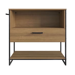 CARACTERÍSTICAS TÉCNICAS: - Estrutura metálica resistente; - Cor: Preto e Marrom; - Tampo, nicho e porta em MDP de 15mm; - 1 porta basculante com dobradiça metálica; - 1 gaveta com corrediça metálica; - 1 nicho para organização; - Pés metálicos fixos; - Design industrial sofisticado; - Suporta até 20 kg.