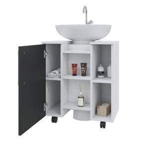 Gabinete de Coluna 01 Porta Sara Yescasa Branco Chess/Preto Ônix