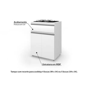 Balcão de Cozinha ASM 186 p/ Cooktop 2 Portas e 1 Gaveta 70cm Branco - Movelbento