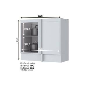 Balcão de Cozinha Canto Reto Americana 1 Porta s/ Tampo 84cm Branco - Henn