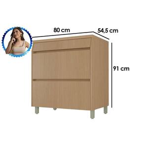 Gabinete De Cozinha Modulado C/ Tampo Simone Mendes C/ 1 Porta E 1 Gaveta 80cm Carvalho/greice - Nesher