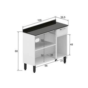 Balcão de Cozinha Dona Maria 6173 3 Portas e 1 Gaveta c/ Tampo e Pés 105cm Branco - Bertolini