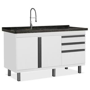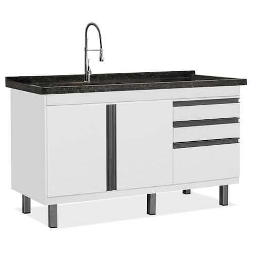 Gabinete - Medida: 67,5 x 144 x 51,5 cm - Puxadores com perfil em alumínio- Pés em ABS - Corrediça telescópica (350mm) - MDF 15mm pintura UV - Bordas em PVC- Gaveta com divisor de talheres - Gavetas revestidas em PET, que garantem um perfeito acabamento - Dobradiça com pistão com ângulo de abertura de 110º