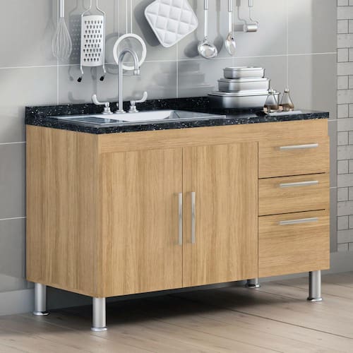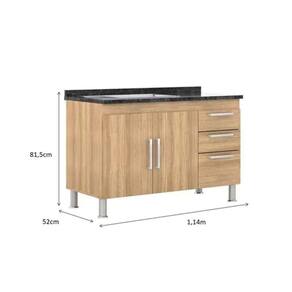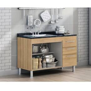 Este gabinete é produzido especialmente para pias de 1,20m, possui 3 gavetas com corrediças metálicas para melhor armazenar os itens de cozinha e conta com uma prateleira profunda completa no seu interior. Possui puxadores modernos e 4 pés para evitar empenamento da base, o gabinete é totalmente fabricado em MDP de 12mm, aumentando a durabilidade, resistência e qualidade do produto.