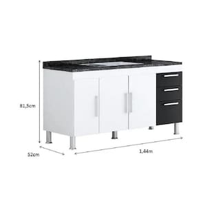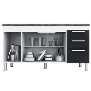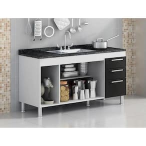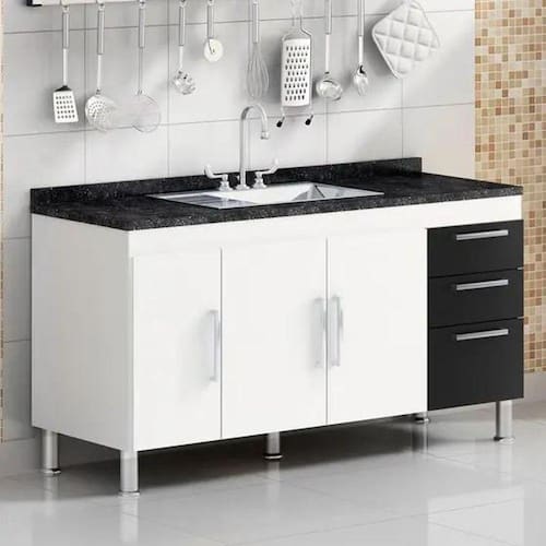 Este gabinete é produzido especialmente para pias de 1,50m, possui 3 gavetas com corrediças metálicas para melhor armazenar os itens de cozinha e conta com uma prateleira profunda completa no seu interior. Possui puxadores modernos e 5 pés para evitar empenamento da base, o gabinete é totalmente fabricado em MDP de 12mm, aumentando a durabilidade, resistência e qualidade do produto.