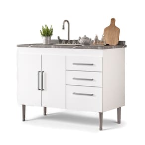 Este gabinete é produzido especialmente para pias de 1,00m, possui 3 gavetas com corrediças metálicas para melhor armazenar os itens de cozinha e conta com uma prateleira profunda completa no seu interior. Possui puxadores modernos e 5 pés para evitar empenamento da base, o gabinete é totalmente fabricado em MDP de 12mm, aumentando a durabilidade, resistência e qualidade do produto. O gabinete não acompanha o tampo da imagem. Além desses detalhes possui uma facil montagem.