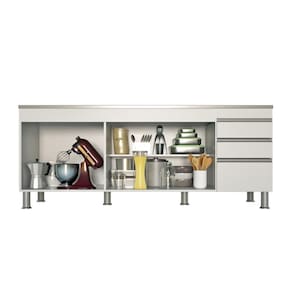 O Gabinete Libra 1,80m é perfeito para quem busca organização, funcionalidade e design moderno. Com portas amplas, prateleiras internas resistentes e acabamento de alta qualidade, ele oferece espaço suficiente para armazenar panelas, utensílios, mantimentos e acessórios de cozinha, deixando tudo sempre à mão e organizado.