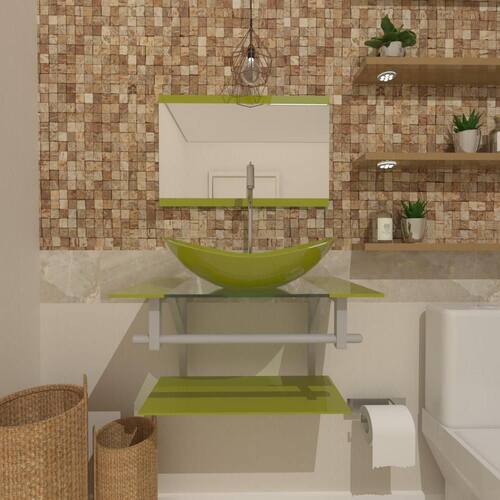 GABINETE DE VIDRO 40CM AC COM CUBA OVAL VERDE OLIVA + TORNEIRA METAL Os nossos gabinetes são indicados para projetos arrojados e de muito bom gosto, além de valorizar o seu ambiente com sofisticação em uma decoração de alto padrão, ele consegue usufruir das vantagens que o vidro proporciona e gerar uma durabilidade indiscutível, sem contar que com as várias opções de cores, você sempre poderá encontrar uma cor perfeita para o seu banheiro. Os vidros são pintados com tinta de alta performance o que lhe garante a permanência da cor . Na compra deste super combo 2 em 1, você compra de uma só vez, o gabinete e a torneira, de forma mais fácil, mais rápido e mais barato. Dados Técnicos Itens Inclusos: - Bancada de vidro com furo para torneira 3,5cm diâmetro e válvula click 4,5cm diâmetro ; - Cuba de vidro oval; - Espelho; - Estrutura e porta toalha de aço carbono com pintura eletrostática cinza; - kit parafusos completo para instalação; - Prateleira de vidro da bancada; - Válvula Click. - Torneira de Metal Cromada Dimensões: - Bancada de Vidro: 40 x 40cm largura x profundidade - Cuba de Vidro Oval: 38 X 26cm comprimento x profundidade - Prateleira Bancada: 40 x 20cm largura x profundidade - Espelheira: 40 x 40cm largura x altura - Porta Toalha: 40cm largura - Válvula: 1" 1/4 Espessuras: - Bancada de Vidro: 8 mm - Cuba de Vidro: 10 mm - Prateleira Bancada: 5 mm - Espelheira: 3 mm Itens inclusos: 01 Torneira cromada. Material: Liga metálica cromada Conexão de entrada: 1/2 polegada -1/4 volta Altura Total da Torneira: 37 cm. Altura da Queda d’água: 27 cm. Pressão Mínima da Água: Recomenda-se uma pressão de pelo menos 6MTC metros de coluna d’água para melhor performance do produto. de todos os itens: 12 meses conforme política de troca e devoluções . Montagem: Montagem e instalação não inclusa na venda ou preço do produto, elas são de inteira responsabilidade do cliente. * Imagens ilustrativas. Marca: Não Informado