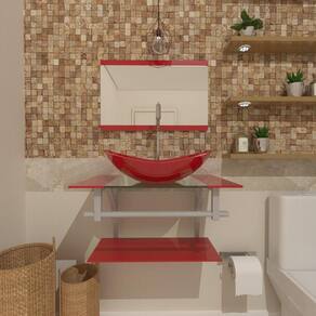 - Bancada de vidro com furo para torneira (3,5cm diâmetro) E válvula click (4,5cm diâmetro);