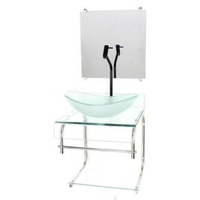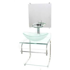 Este gabinete é composto por: - Bancada de vidro com furo para instalação da torneira 3,5cm de diâmetro e da válvula click 4,5cm de diâmetro . - Cuba de vidro oval jateada. - Espelho. - Estrutura e porta toalha de inox, ultra resistente à umidade e não enferruja. - Kit completo de parafusos para instalação. - Prateleira de vidro para a bancada. - Válvula click.