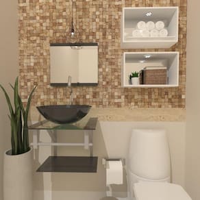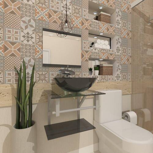 Espessuras: - Bancada de Vidro: 8 mm - Cuba de Vidro: 10 mm - Prateleira Bancada: 6 mm - Espelheira: 4 mm