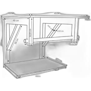 Dimensões: - Bancada de Vidro: 45 x 45 cm largura x profundidade - Cuba de Vidro: 35 cm diâmetro - Prateleira Bancada: 45 x 25 cm largura x profundidade - Espelheira: 45 x 45 cm largura x altura - Porta Toalha: 45 cm largura - Válvula