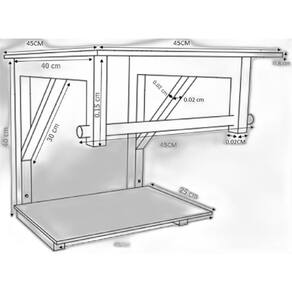 Dimensões: - Bancada de Vidro: 45 x 45 cm largura x profundidade - Cuba de Vidro Retangular: 39x32 cm largura x cumprimento - Prateleira Bancada: 45 x 25 cm largura x profundidade - Espelheira: 45 x 45 cm largura x altura - Porta Toalha: 45 cm largura - Válvula