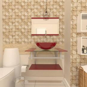 Gabinete de Vidro para Banheiro 60cm Com Cuba Redonda AC Os nossos gabinetes são indicados para projetos arrojados e de muito bom gosto, além de valorizar o seu ambiente com sofisticação em uma decoração de alto padrão, ele consegue usufruir das vantagens que o vidro proporciona e gerar uma durabilidade indiscutível, sem contar que com as várias opções de cores, você sempre poderá encontrar uma cor perfeita para o seu banheiro. Dados Técnicos Itens Inclusos: Gabinete de Vidro 60cm para banheiro composto de bancada de vidro, cuba de vidro, prateleira da bancada, espelheira, válvula, estrutura e porta toalha de aço eletrostático e kit parafusos completo para instalação. Dimensões: - Bancada de Vidro: 60 x 45cm largura x profundidade - Cuba de Vidro Redonda: 35 cm diâmetro - Prateleira Bancada: 60 x 25 cm largura x profundidade - Espelheira: 60 x 45 cm largura x altura - Porta Toalha: 60 cm largura - Válvula: 1 1/4 Espessuras: - Bancada de Vidro: 8 mm - Cuba de Vidro: 12 mm - Prateleira Bancada: 6 mm - Espelheira: 3 mm Garantia: 12 meses conforme política de troca e devoluções . Atenção: Preço referente somente ao gabinete, não acompanha torneira, sifão e acessórios. Montagem: Montagem e instalação não inclusa na venda ou preço do produto, elas são de inteira responsabilidade do cliente. Imagens Ilustrativas.