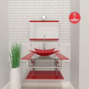 Espessuras: - Bancada de Vidro: 8 mm - Cuba de Vidro: 10 mm - Prateleira Bancada: 6 mm - Espelheira: 3 mm
