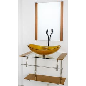 Gabinete de vidro para banheiro inox 70cm cuba oval chanfrada dourado real Os nossos gabinetes são indicados para projetos arrojados e de muito bom gosto, além de valorizar o seu ambiente com sofisticação em uma decoração de alto padrão, ele consegue usufruir das vantagens que o vidro proporciona e gerar uma durabilidade indiscutível, sem contar que com as várias opções de cores, você sempre poderá encontrar uma cor perfeita para o seu banheiro. Itens inclusos: - bancada de vidro com furo para instalação da torneira 3,5cm diâmetro e da válvula click 4,5cm diâmetro ; - cuba de vidro oval chanfrada; - espelho; - estrutura e porta toalha de inox, esse suporte não enferruja e tem alta resistência a umidade; - kit parafusos completo para instalação; - prateleira de vidro da bancada; - válvula click. Dimensões: - bancada de vidro: 70 x 45cm largura x profundidade ; - cuba de vidro oval chanfrada: 46 x 31cm comprimento x largura ; - prateleira bancada: 70 x 25cm largura x profundidade ; - espelho: 70 x 45cm largura x altura ; - porta toalha: 70cm largura ; - válvula: 1 1/4. Espessuras: - bancada de vidro: 8mm; - cuba de vidro: 10mm; - prateleira bancada: 6mm; - espelho: 3mm. : 12 meses conforme política de troca e devoluções . Atenção: preço referente somente ao gabinete, não acompanha torneira. Montagem: montagem e instalação não inclusa na venda ou preço do produto, elas são de inteira responsabilidade do cliente. Imagens ilustrativas.