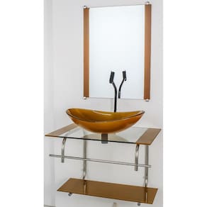 Gabinete de vidro para banheiro inox 60cm cuba oval dourado real Os nossos gabinetes são indicados para projetos arrojados e de muito bom gosto, além de valorizar o seu ambiente com sofisticação em uma decoração de alto padrão, ele consegue usufruir das vantagens que o vidro proporciona e gerar uma durabilidade indiscutível, sem contar que com as várias opções de cores, você sempre poderá encontrar uma cor perfeita para o seu banheiro. Itens inclusos: - bancada de vidro com furo para instalação da torneira 3,5cm diâmetro e da válvula click 4,5cm diâmetro ; - cuba de vidro oval; - espelho; - estrutura e porta toalha de inox, esse suporte não enferruja e tem alta resistência a umidade; - kit parafusos completo para instalação; - prateleira de vidro da bancada; - válvula click. Dimensões: - bancada de vidro: 60 x 45cm largura x profundidade ; - cuba de vidro oval: 47 x 31cm comprimento x largura ; - prateleira bancada: 60 x 25cm largura x profundidade ; - espelho: 60 x 45cm largura x altura ; - porta toalha: 60cm largura ; - válvula: 1 1/4. Espessuras: - bancada de vidro: 8mm; - cuba de vidro: 10mm; - prateleira bancada: 6mm; - espelho: 3mm. : 12 meses conforme política de troca e devoluções . Atenção: preço referente somente ao gabinete, não acompanha torneira. Montagem: montagem e instalação não inclusa na venda ou preço do produto, elas são de inteira responsabilidade do cliente. Imagens ilustrativas.