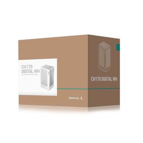 Gabinete DeepCool CH170 Digital Mini ITX Vertical Branco Nome: Gabinete Gamer DeepCool CH170 Digital Branco Mini ITX Vertical Sem Fans R-CH170-WHNPI0D-G-1 Marca: DeepCool Part Number: R-CH170-WHNPI0D-G-1 EAN: 6933412774211 Características: - Gabinete com todos os painéis perfurados proporcionando ventilação excelente - Display digital integrado mostrando parâmetros da CPU, placa de vídeo ou fonte - Suporte para air coolers de até 172 mm de altura ou radiadores de até 240mm - Suporte para fontes de tamanho ATX, SFX ou SFX-L - Conectividade USB Tipo-C Gen2 de alta velocidade no painel frontal Especificações: Classe de tamanho: Mini-ITX Materiais: Aço SPCC, PVC, Plástico ABS Janela lateral: Não Cor: Branco Suporte para tamanho de placa mãe: Mini-ITX Suporte para placas mãe com conectores traseiros: Não Slots de expansão PCI: 3 Horizontais Baia de discos: 1x 2.5 ou 1x 3.5 via bracket multifuncional, não pode ser com fan de 120 mm instalada Conexões do painel frontal: 2x USB 3.0, 1x USB Tipo-C Gen2, 1x 3.5mm Fone e Microfone Fans inclusas: Não Dimensões aproximadas: 250 x 200 x 380 mm Formatos de fontes suportadas: ATX, SFX, SFX-L Suporte para fans: Topo: 1x 120 mm via bracket multifuncional, não pode ser com discos 2.5/3.5 instalados Traseira: 2x 120 mm Inferior: 1x 120 mm Lateral: 2x 120 mm Suporte para Water Coolers: Lateral: até 240 mm Espaço máximo livre: Comprimento de placa de vídeo: 305 mm com fonte SFX/SFX-L, 230mm com fonte ATX Altura para air cooler: 172 mm Comprimento de fonte: até 140 mm Peso Bruto: 4100 g Peso Líquido: 3100 g Dimensões da embalagem: 250 x 200 x 380 mm Marca: Não Informado