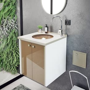 Transforme seu ambiente com um conjunto que une design sofisticado e alta qualidade. O gabinete com tampo em porcelanato polido traz beleza, resistência e praticidade, enquanto o corpo em MDF Ultra maior resistência a umidade. Os puxadores metálicos com pintura eletrostática e as portas de vidro lapidadas oferecem durabilidade e sofisticação. A cuba moldada em vidro adiciona charme e segurança ao conjunto. O espelho de 3mm com moldura em alumínio eletrostático completa o visual moderno, garantindo reflexo nítido, resistência e fácil instalação perfeito para banheiros e lavabos. Acabamento: BP Altura do Conjunto: 49 cm Ambiente: null Ambiente Principal: Banheiro Cor: Bege / Branco Informação Complementar: 1x Gabinete para Banheiro 42cm Fenix Marmo Bege/Branco Largura: 42,6 cm Altura: 49 cm Peso: 15,315 kg Profundidade: 42,5 cm Necessita Montagem: Sim