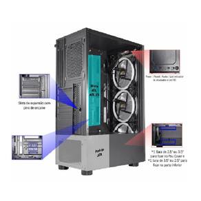 Gabinete gamer 10w5 painel vidro com 3fan - Gabinete gamer elite - cg-10w5 Psu cover Painel e chapa lateral de vidro temperado 3mm Power reset led indicador de atividades e led hd Gabinete gamer elite - cg-10w5 Especificações técnicas: Placa-mãe compatível: atx, micro atx , itx. Dimensões do chassi axlxp : 405180310mm Dimensões do gabinete axlxp : 428185318mm Altura da cpu cooler: 160mm Suporte para placa de vídeo: até 280mm Áudio ac97 Fontes de alimentação compatíveis: padrão atx Portas usb: 3 x 2.0 a cor azul neste modelo não Representa 3.0, todas entradas 2.0 Baias internas: 12.5ssd12.5 ou 3.5 i 12.5 Ou 3.5hd Slots de expansão: 07 Chassi 0,5mm Refrigeração: Frontal: 3 fans de 120x120mm aa-faf1 - incluso Traseira: 1 fan de 120x120mm - opcional Compatível com water cooler de 120mm traseiro Embalagem: Dimensões cxlxa : 475x225x400mm Quantidade: 01 peça por caixa Peso líquido: 3,55kg Peso bruto: 4,20kg Características gerais do produto: Material: metal : 90 Marca: Não Informado
