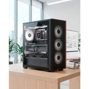 O Gabinete Aerocool D501-V1 oferece um design moderno com painel frontal de malha e detalhes em madeira, combinando estilo e funcionalidade. Com espaço para até 11 ventoinhas e suporte para refrigeradores líquidos de até 360 mm, ele garante excelente resfriamento para configurações poderosas.