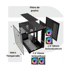 Com espaço para múltiplas ventoinhas(4 Fans Inclusas) e refrigeração eficiente, este gabinete mantém seus componentes resfriados durante as sessões de jogo intensas.