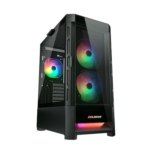 Formato: Mid Tower Tipo de placa-mãe: Mini ITX / Micro ATX / ATX / CEB / E-ATX Dimensões (LxAxP): 230 x 491 x 386 (mm) Painel de E/S: USB 3.0 x2, USB 2.0 x1, Fone de ouvido de 4 polos, Conector de áudio x1, Botão RGB Baias: 3.5" x2 / 2.5" x2 (2 bandejas SSD incluídas) Slots de expansão: 7+3 Suporte de GPU vertical: Sim Painel lateral: Vidro temperado de 4 mm Sistema de iluminação a bordo: Sim Sincronização RGB com M/B: Sim Luz RGB logo COUGAR: Sim Máx. comprimento da placa gráfica: 330 (mm) Máx. altura do cooler da CPU: 190 (mm) Máx. comprimento da PSU: 160 (mm) Cor: Preto
