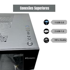 Gabinete Gamer Ktrok Cubo Preto Aquario Lateral Frente Vidro