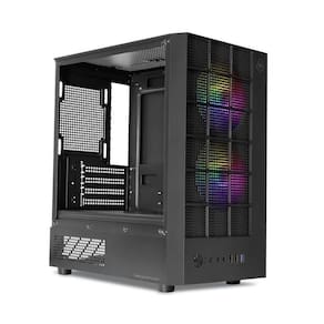 O painel frontal oferece conectividade prática com 1x USB 3.0, 1x USB 2.0 e entrada para áudio HD. Fabricado em estrutura SPCC e ABS, o gabinete entrega durabilidade, estética moderna e ótimo custo-benefício, sendo ideal para quem busca montar um computador gamer compacto e com aparência premium.