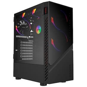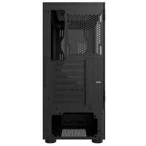 Gabinete Gamer Set Black Vulcan - Lateral Em Vidro - Pcyes - Gsbvpbr Especificações Técnicas: Formato: Mid-tower; Frontal em ABS + acrílico, lateral em vidro temperado; Espessura do chassi: 0,5mm; Dimensões do produto (CxLxA): 365x200x440mm; Dimensões da caixa (CxLxA): 490x250x420mm; Painel frontal 1x USB ; 2x USB ; 1x HD Audio 3,5mm; 1x Microfone 3,5mm;