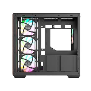 O Gabinete Mid Tower View 380 WS ARGB Black é um chassi ATX de câmara dupla, com detalhes elegantes em madeira. Ele oferece suporte a placas-mãe com conectores ocultos das marcas ASUS, MSI e GIGABYTE, e vem equipado com três ventoinhas ARGB Lite Reverse de 120 mm no lado da placa-mãe e uma ventoinha ARGB Lite de 120 mm na parte traseira.