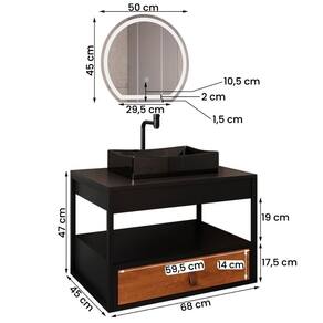 Marca: DoceLar | Altura: 47 cm | Largura: 68 cm | Comprimento: 45 cm | Altura Embalado: 45,5 | Largura Embalado: 58 | Comprimento Embalado: 72 | Peso: 25,57 kg | Peso Embalado: 25,57 | Estado de Origem: SP | Modelo: Gabinete Harley Espelho Cuba Torneira | Material: MDP de 15 mm e Aço | Tonalidade: Multicolorido | Garantia em meses: 03 meses de garantia para de fabricação. | Descrição do Tamanho: 47 x 68 x 45 cm | Com portas: Não | Fonte do produto: | Linha: Banheiro | Cor da pia: Preto | Quantidade de furos para torneira: 1 | Profundidade: 45 cm | É kit: Sim | Condição do item: | Tipo de armário para banheiro: Para pendurar | Quantidade de portas: 0 | Com rodas: Não | Materiais do móvel: MDP de 15 mm e Aço | Com gavetas: Sim | Material da pia: Mármore Sintético | Quantidade de gavetas: 1 | Inclui espelho: Sim | Inclui pia: Sim | Inclui torneira: Sim | Requer montagem: Sim | Código ANVISA (32481): Não se aplica | Código da Homologação ANATEL (32495): Não se aplica | Código INMETRO (32486): Não se aplica | Código MAPA (32485): Não se aplica | Baterias são necessárias?: Não | Fonte de Energia: Entrada de 100-265V AC (50/60Hz) e saída de 12V DC (14W máx) | Principais características do produto 0: Espelho com touch switch moderno e sensível ao toque | Principais características do produto 1: Possui estrutura metálica | Principais características do produto 2: Possui LED bivolt | Certificação de teste externa: Não aplicável | Componentes incluídos: Gabinete, espelho, cuba, torneira, válvula e manual de montagem | Is Fragile: Sim | do modelo: 28164 | de caixas: 3 | Quantidade de itens: 1 | da peça: 28164 Cor: Preto/Nature